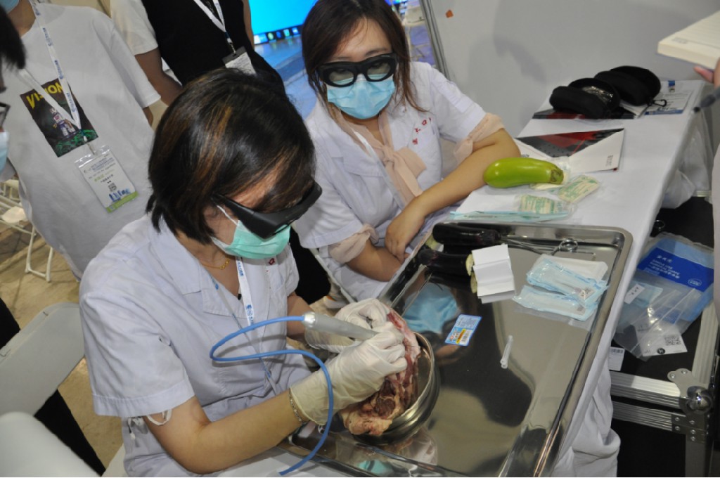 同時(shí),會(huì)場(chǎng)也有多種波長(zhǎng)激光操作體驗(yàn),為口腔同仁提供了零距離體驗(yàn)口腔激光技術(shù)的機(jī)會(huì),由彭川洋主治醫(yī)師、姜艾佳主治醫(yī)師、楊鈺主治醫(yī)師進(jìn)行現(xiàn)場(chǎng)操作指導(dǎo)。在三位年輕專家的指導(dǎo)下,參會(huì)者充分體驗(yàn)了二極管激光、Nd:YAG激光、銩激光、Er:YAG激光及光動(dòng)力激光等多種波長(zhǎng)激光精準(zhǔn)、微創(chuàng)和舒適化治療操作,并進(jìn)行互動(dòng)和交流,參加體驗(yàn)的同仁們紛紛表示受益匪淺。